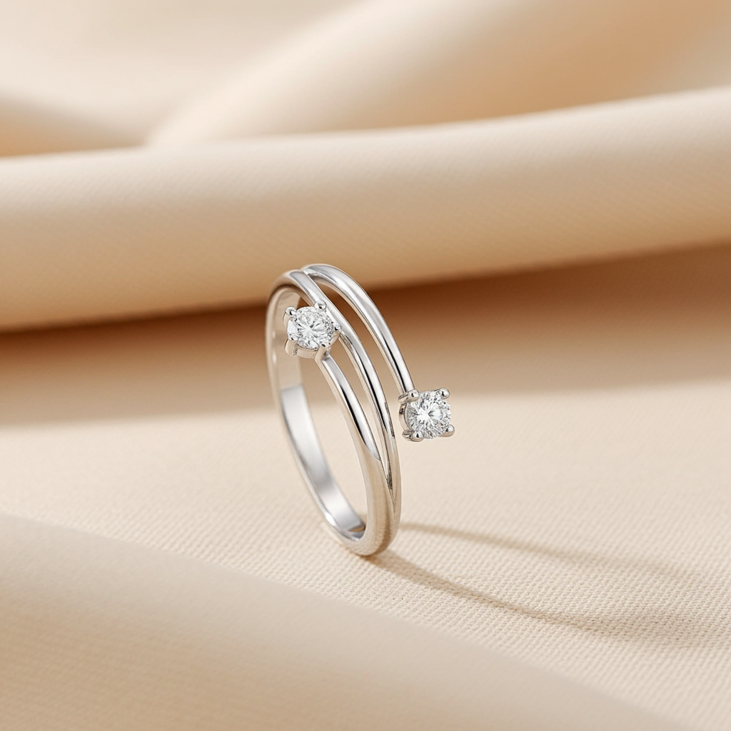 O Anel Dueto de Luz é a tradução perfeita da sofisticação minimalista. Com duas zircônias reluzentes que parecem dançar em sintonia sobre a prata 925, ele simboliza união, equilíbrio e harmonia. O design delicado de aro duplo cria movimento e leveza, proporcionando brilho em cada ângulo.