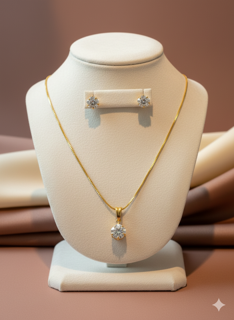 O banho em ouro 18K realça cada detalhe da peça, proporcionando elegância e um brilho sofisticado que ilumina o visual com suavidade e presença. Ideal para mulheres que desejam expressar sua luz interior, este conjunto é perfeito tanto para ocasiões especiais quanto para dar um toque de glamour ao dia a dia.